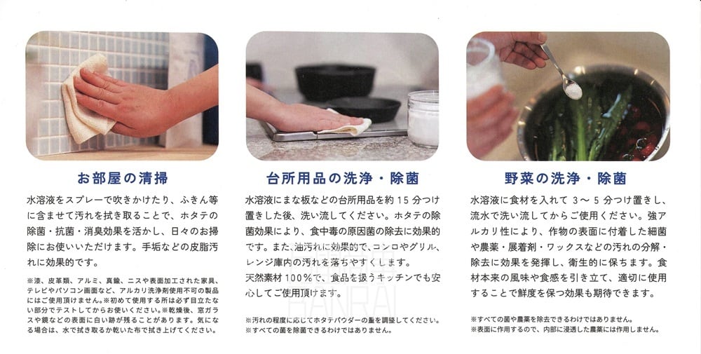 ホタテの除菌・抗菌・消臭効果を活かし、日々のお掃除に。