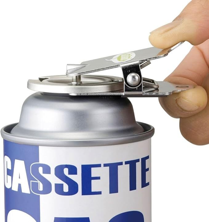 ●安全に簡単に、カセットボンベに残ったガスが抜けます。穴をあけずにはさむだけ。